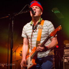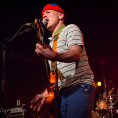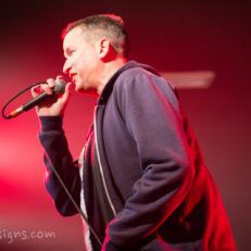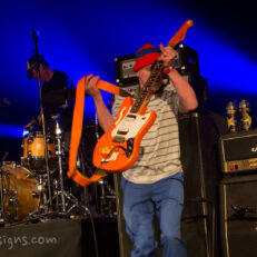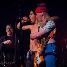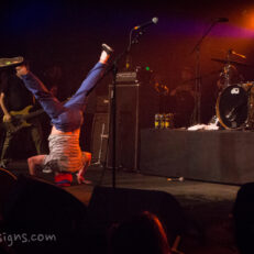There is no lack of stage presence or energy with the Vandals, but they had an uphill battle when it comes to venues as the indoor stage areas at the OC Fairgrounds are super challenging for live music performances. From what I understand, Musink is considering moving the bands outdoors next year, so lets keep our fingers crossed for that! The Vandals are probably one of the best bands when it comes to combatting technical adversity like what was seen at the 7th Annual Musink Tattoo Convention and Music Festival in Costa Mesa. From the start there were issues with Warren Fitzgerald’s guitar cutting out during Anarchy Burger (hold the government). Warren continued to play as if nothing was wrong, and then the band had to contend with a fan that jumped onto the stage and ran around during the entire song – it was like security just gave up once their line was broken. The Vandals handled everything with humor and poise as Warren used the moment to compare abs with the security breaking fan. And talk about energy, I don’t know if it was the plethora of Rock Star Energy cans strategically placed all around the stage or if these guys are just eating right, but they sure know how to perform. Fitzgerald and lead singer David Quackenbush were running all over the stage, they were jumping up and down, and eventually Warren started doing hand stands and cartwheels.